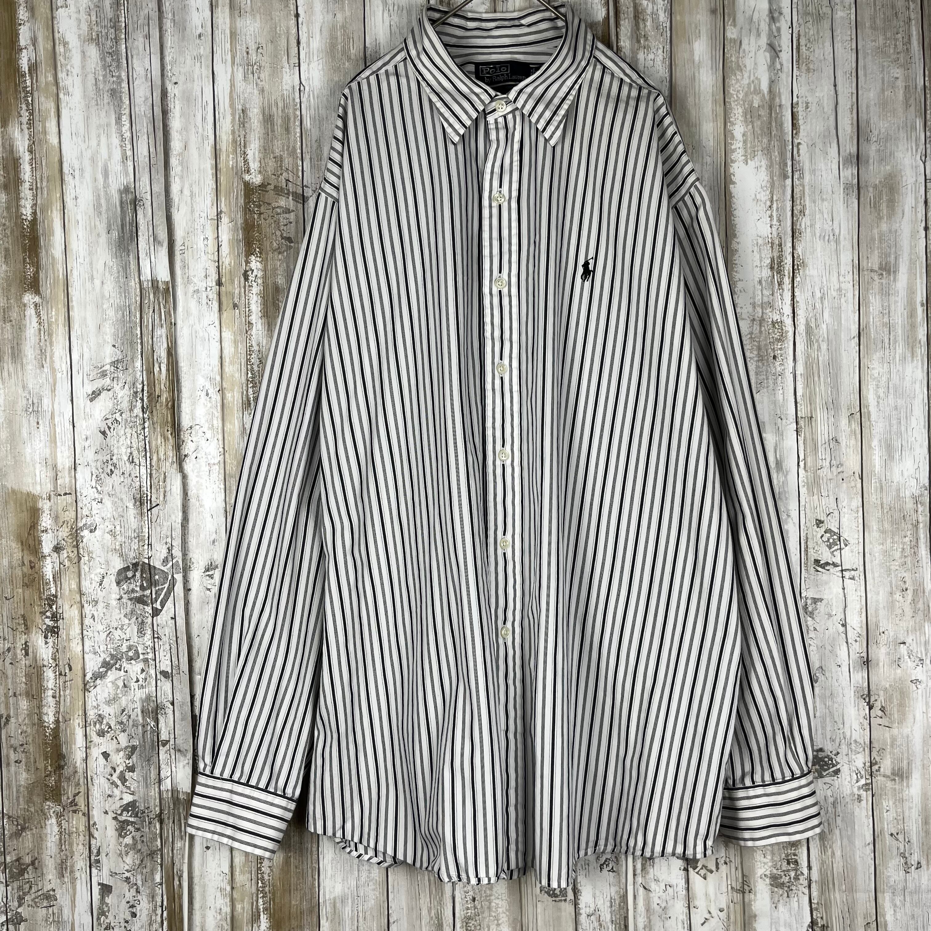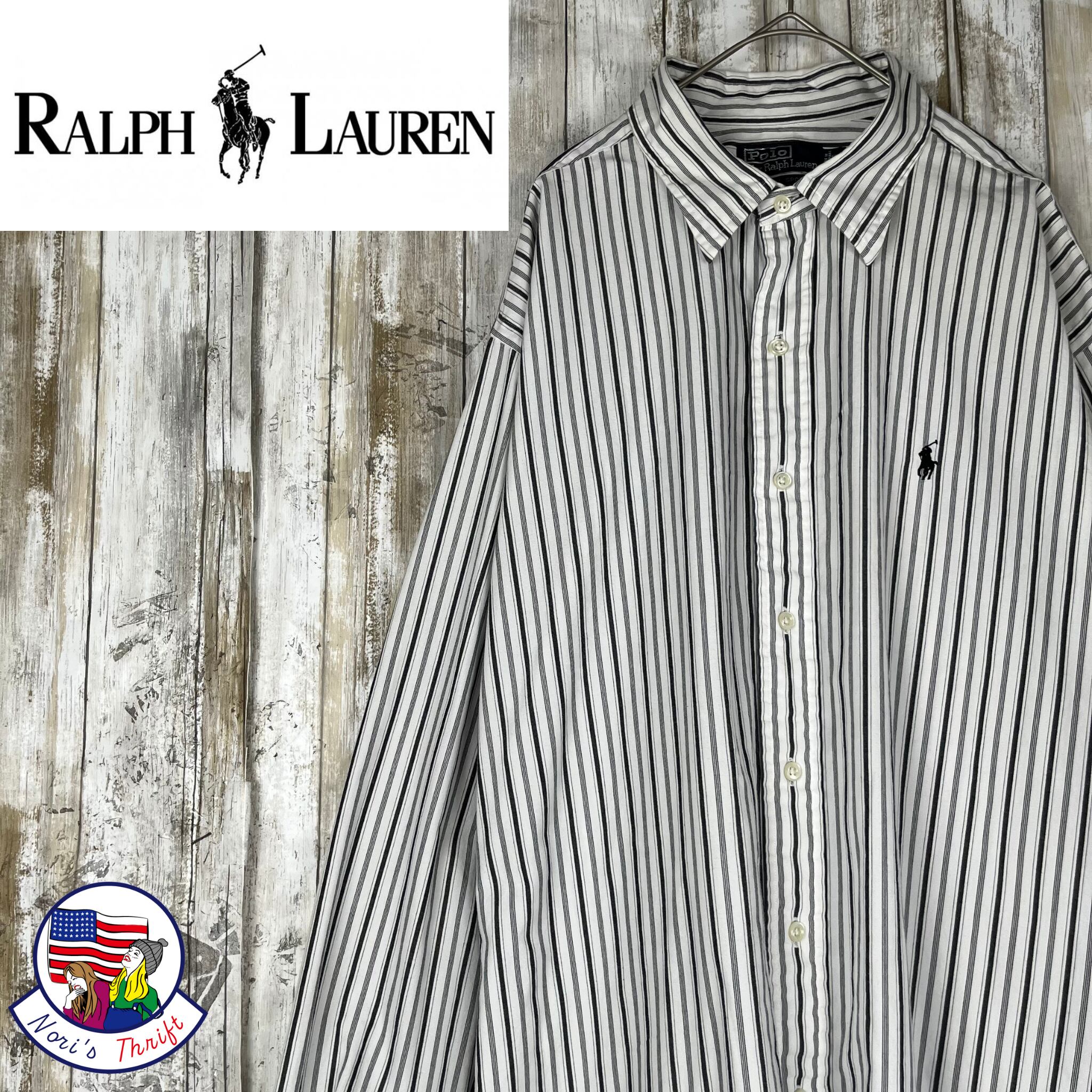大人気Ralph Lauren ラルフローレン 長袖シャツ 白黒ストライプ