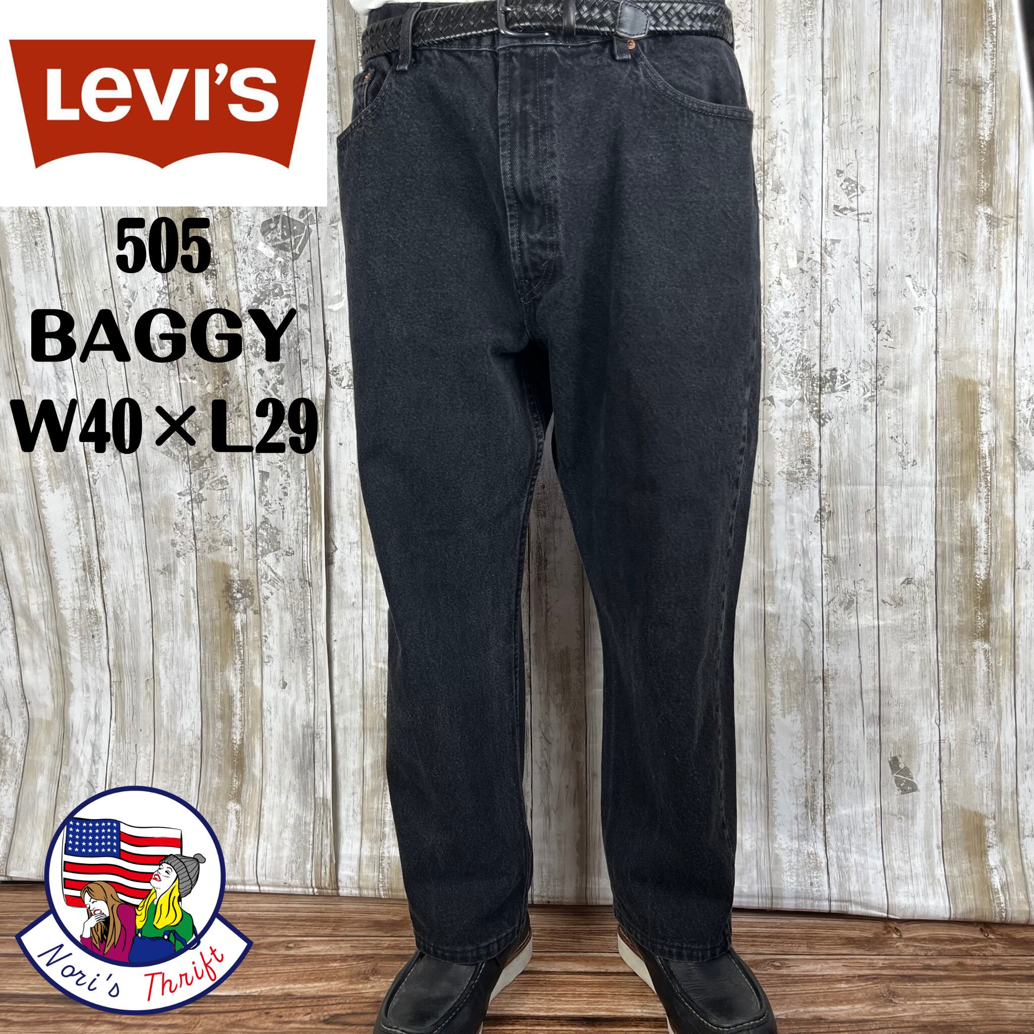 大人気リーバイス505ブラックデニムバギーワイド極太W40 USA規格 805