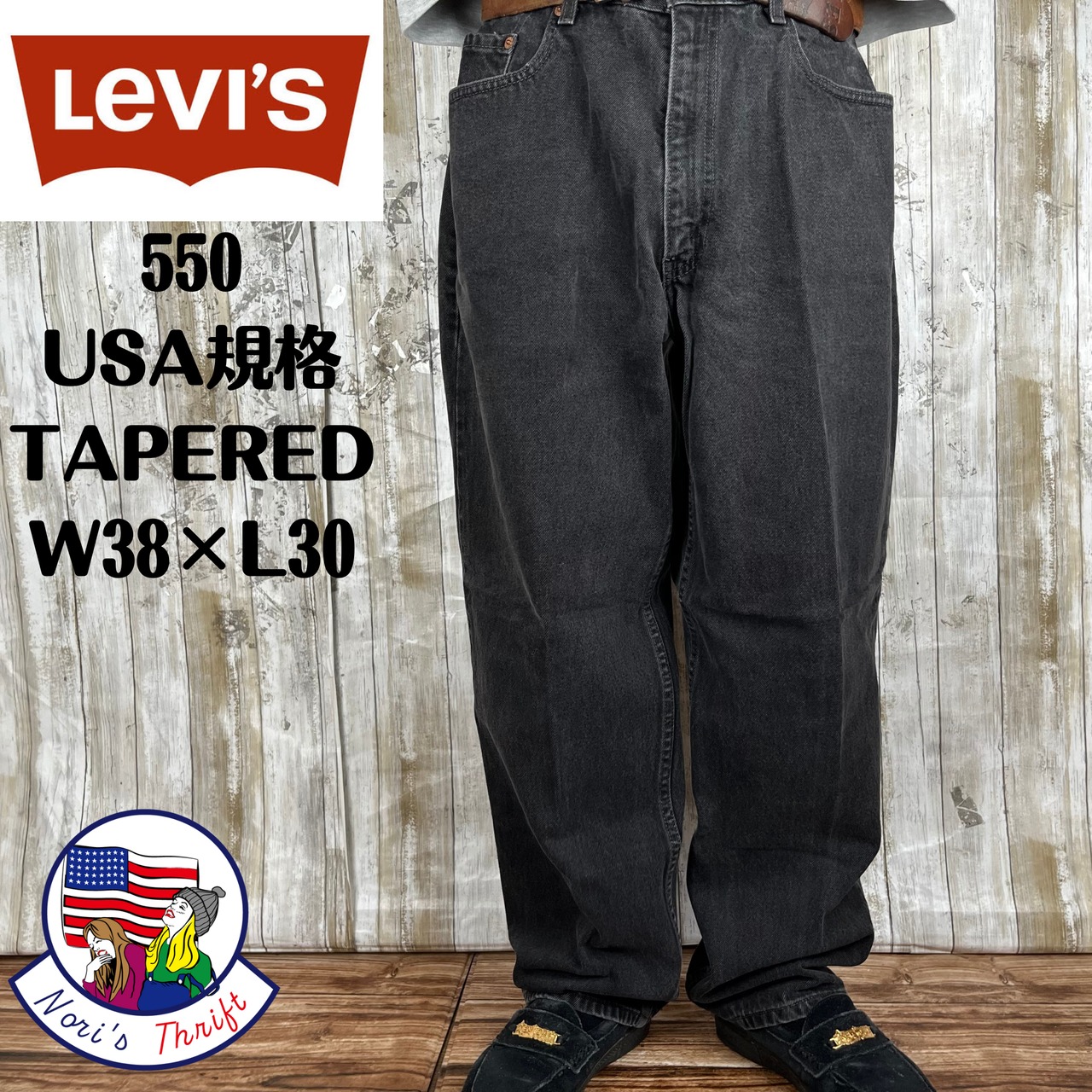 USA規格 大人気リーバイス550ブラックデニム バギールーズW38 833