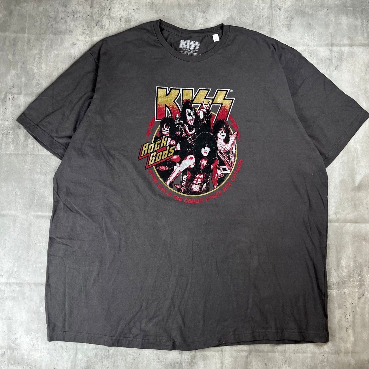 アメリカのハードロックバンド、KISSのTシャツになります。フロントの大きなプリントが印象的な1着でとても存在感があります。