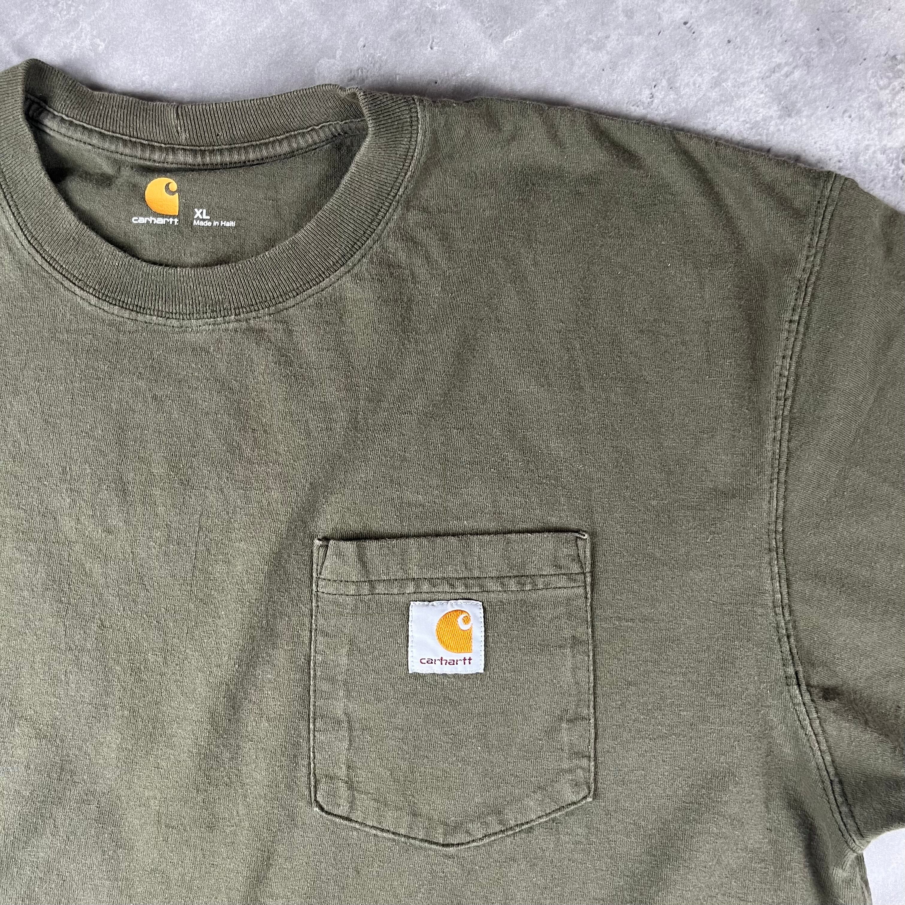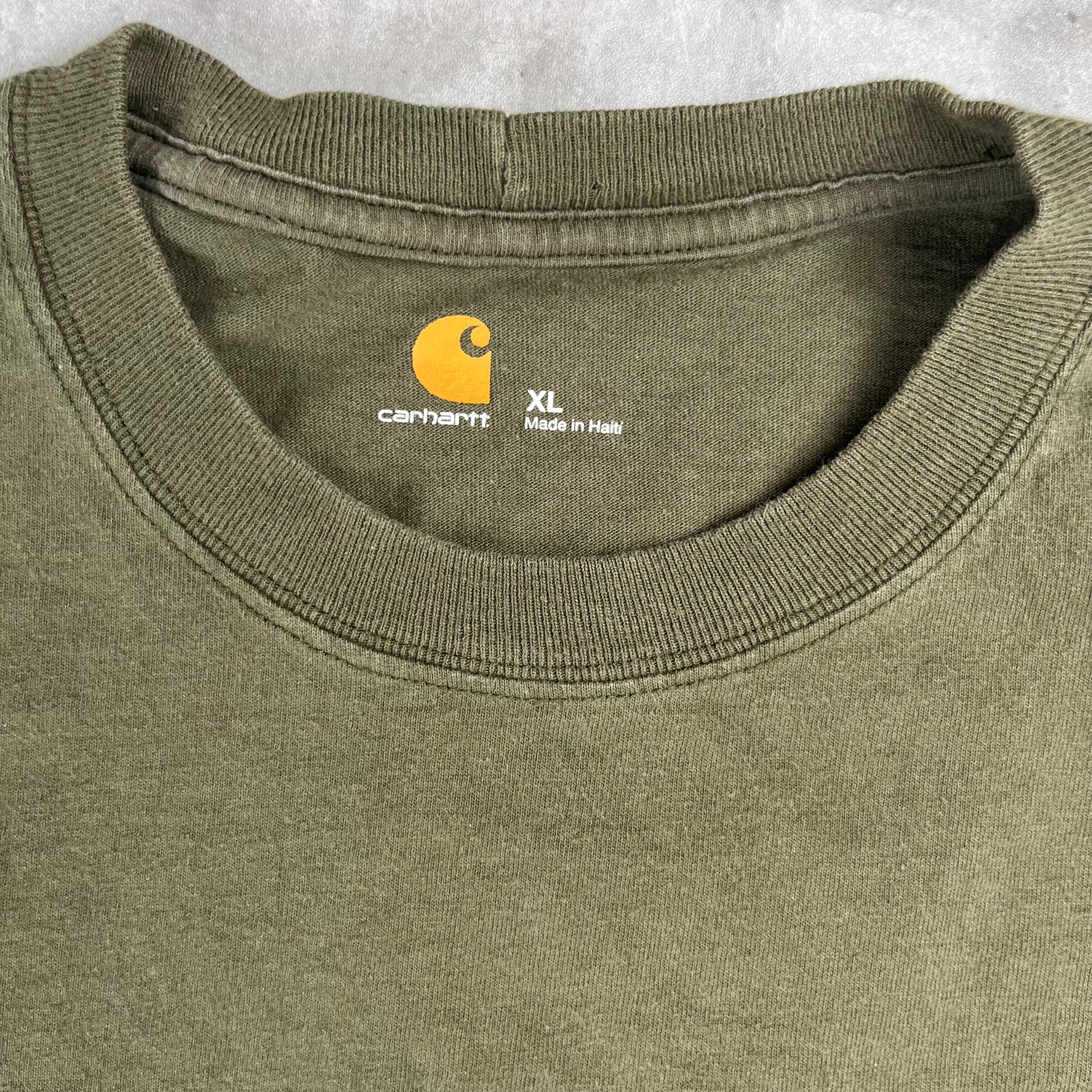 カーハート カーキ 半袖 Tシャツ ワンポイント ロゴ USA古着