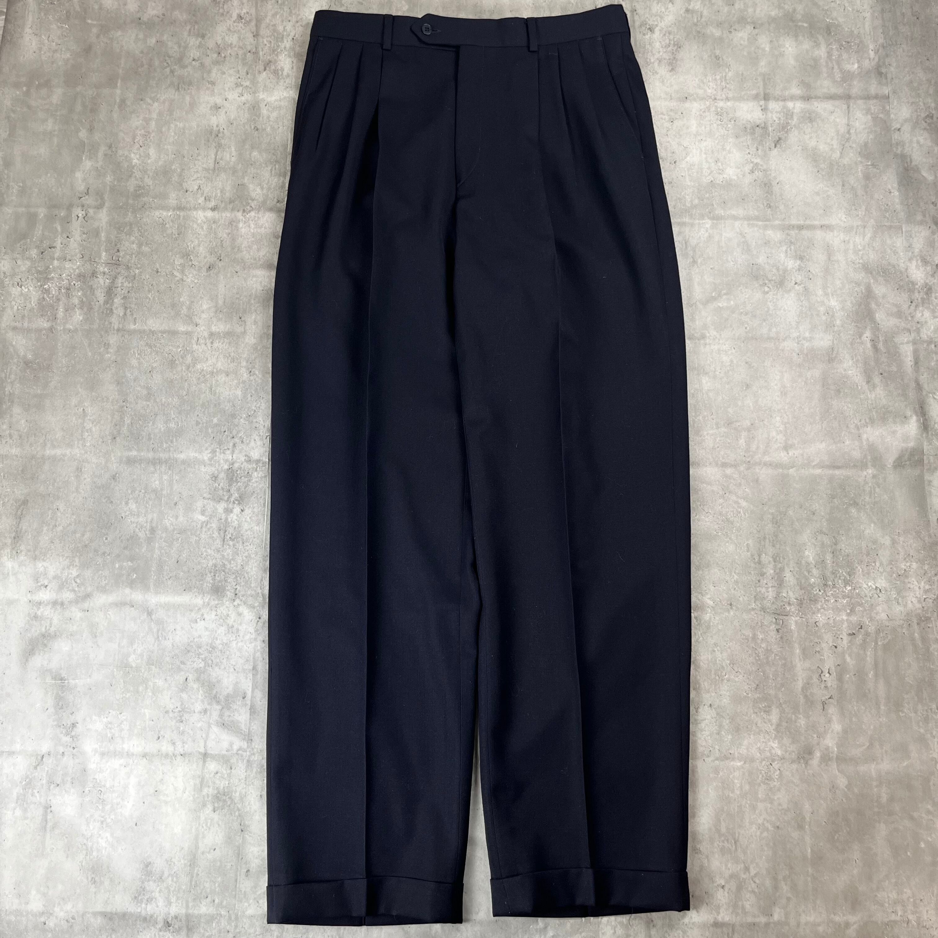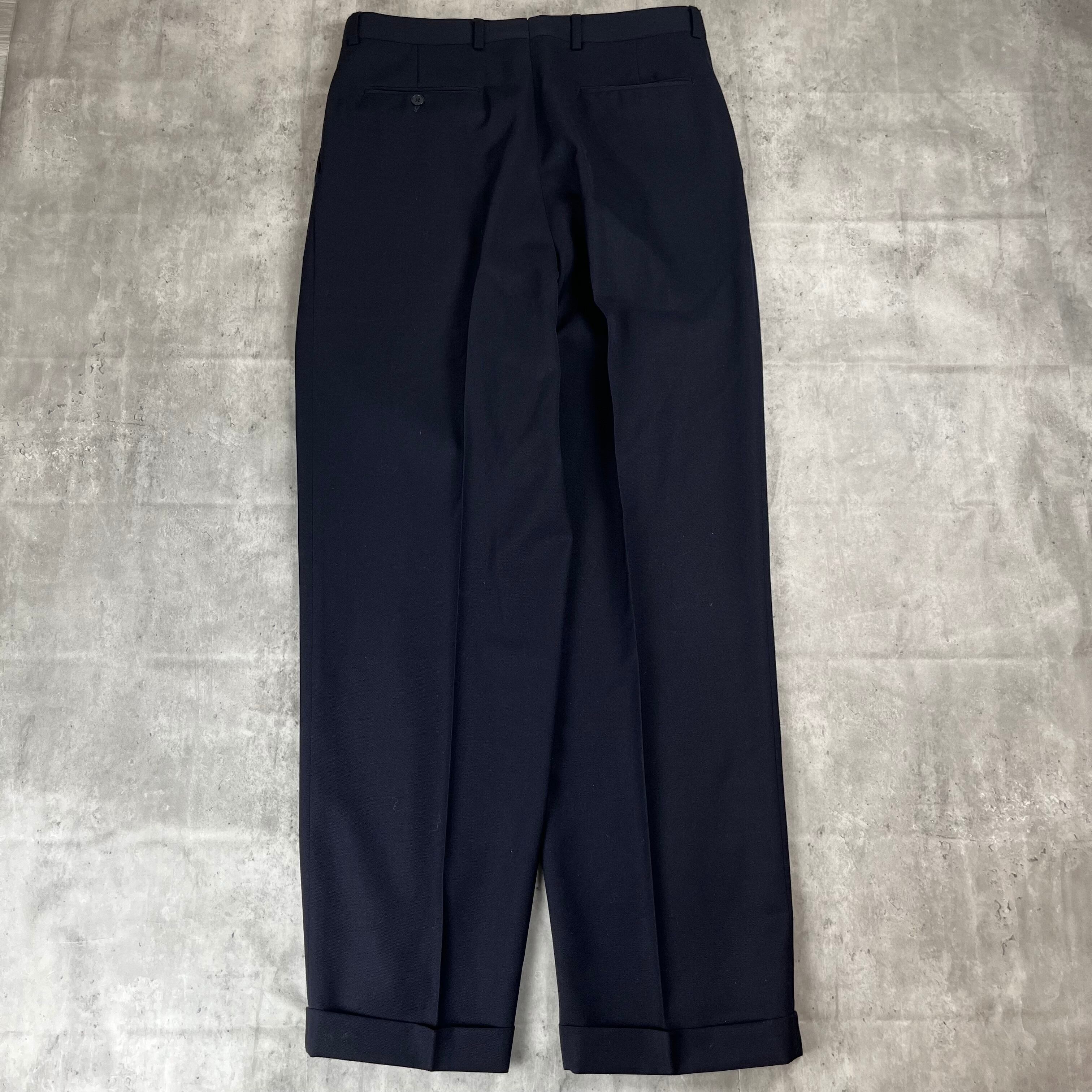 USA製、ジバンシーのスリータックスラックスになります。ウールとシルクの混合の生地のため、シワになりくいです。濃紺なので、ファッションの組み合わせもしやすく、エレガントに着こなせる1着です!