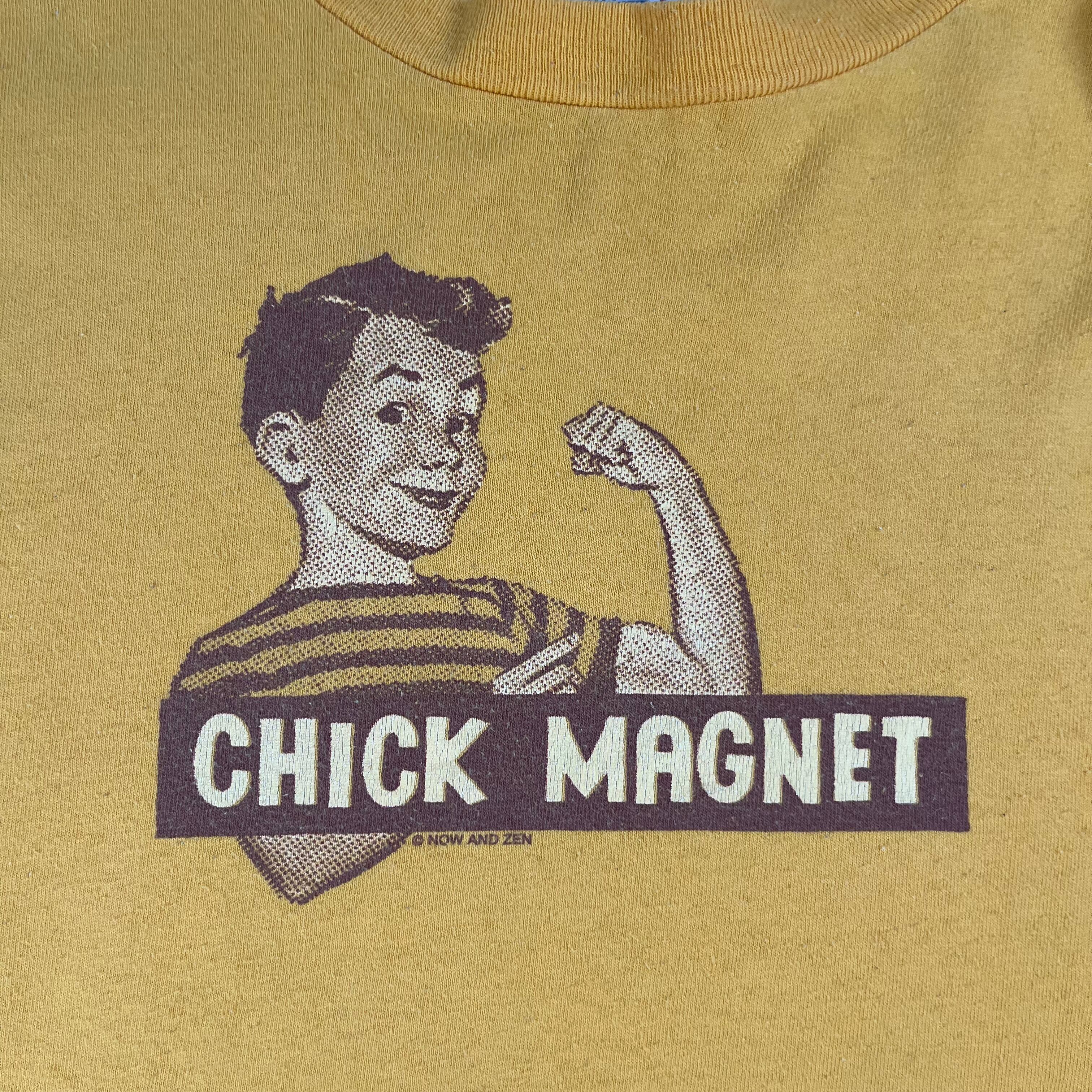 Chick magnet、アメリカのスラングで女性を惹きつけるという活かした意味です!