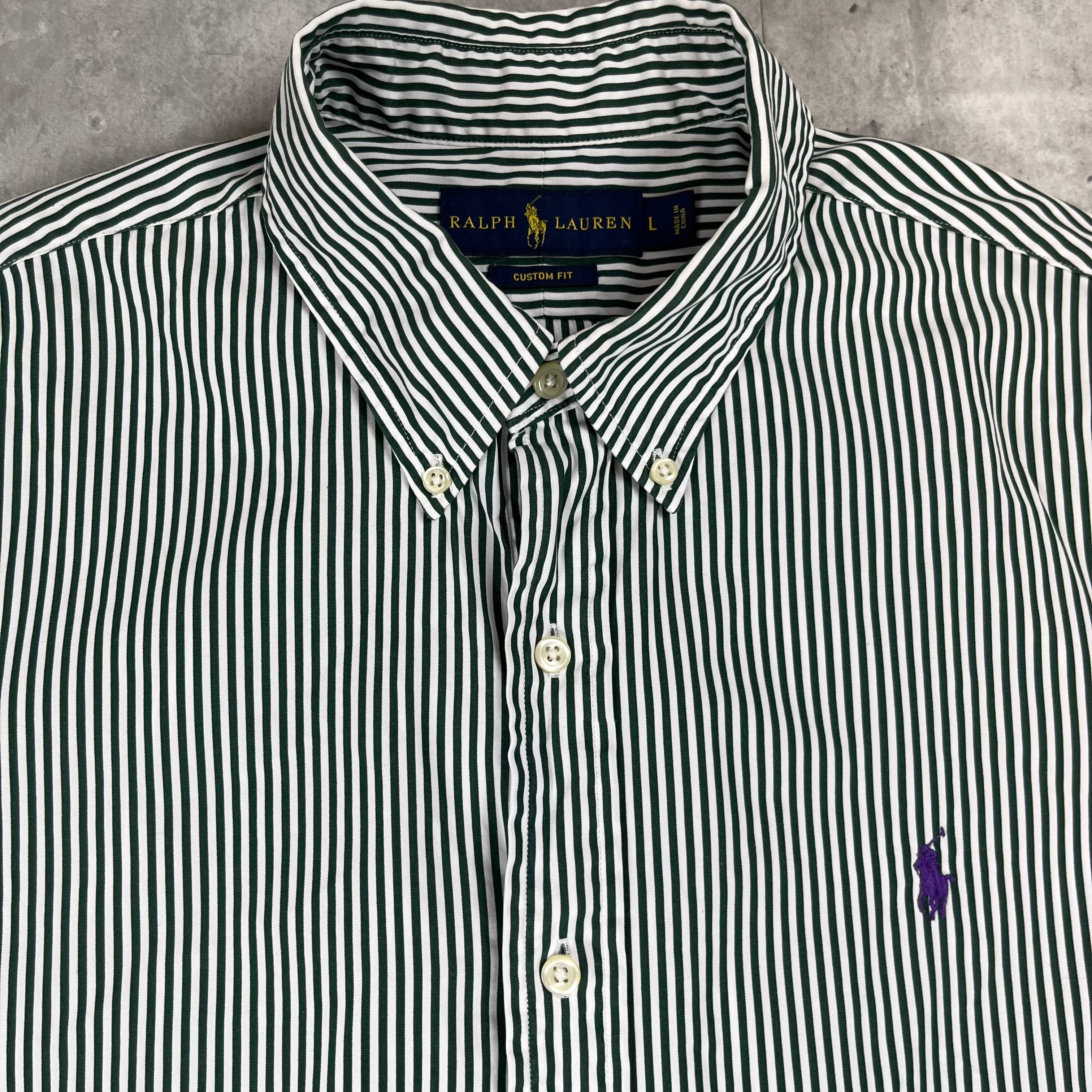 ラルフローレン 長袖シャツ グリーンストライプ 1265