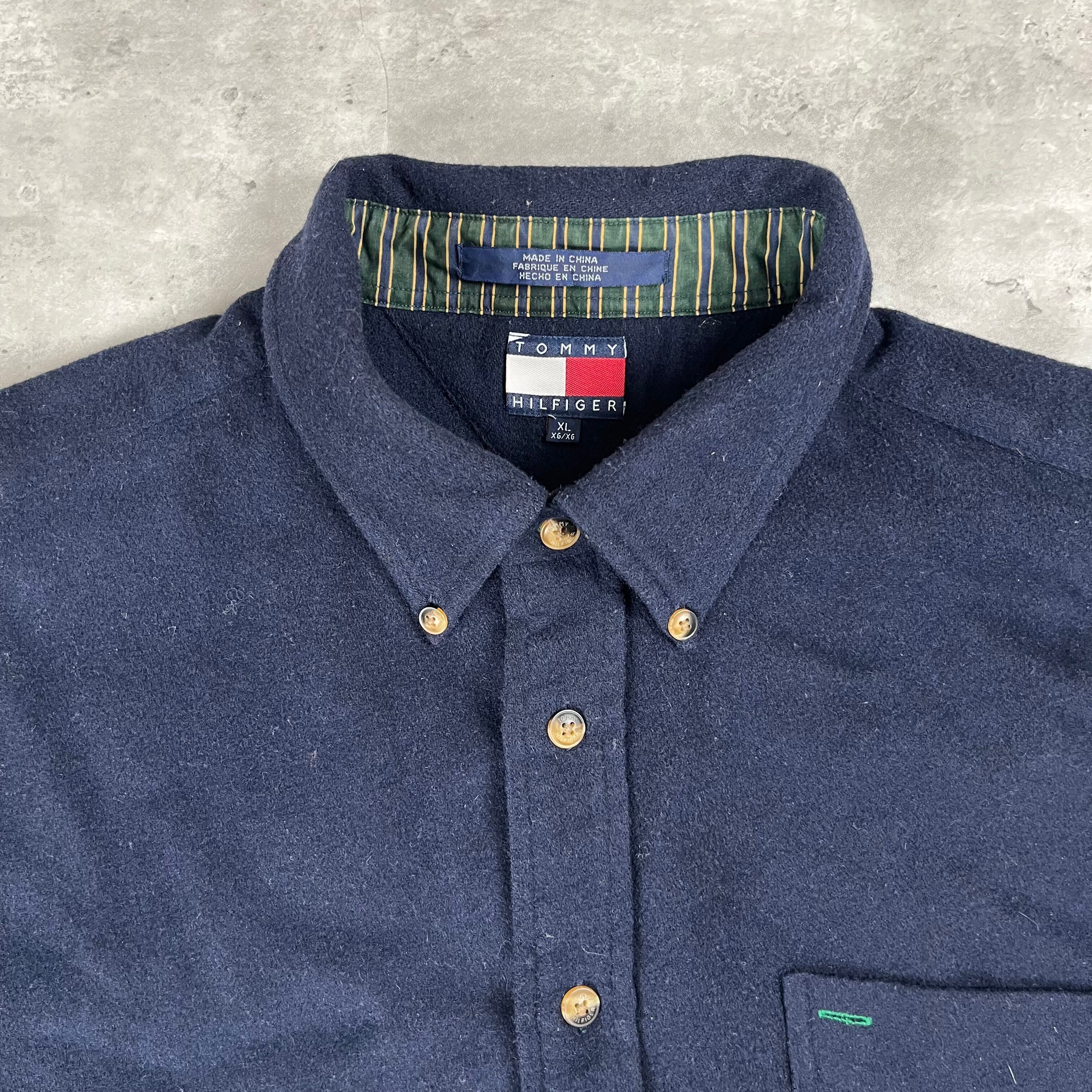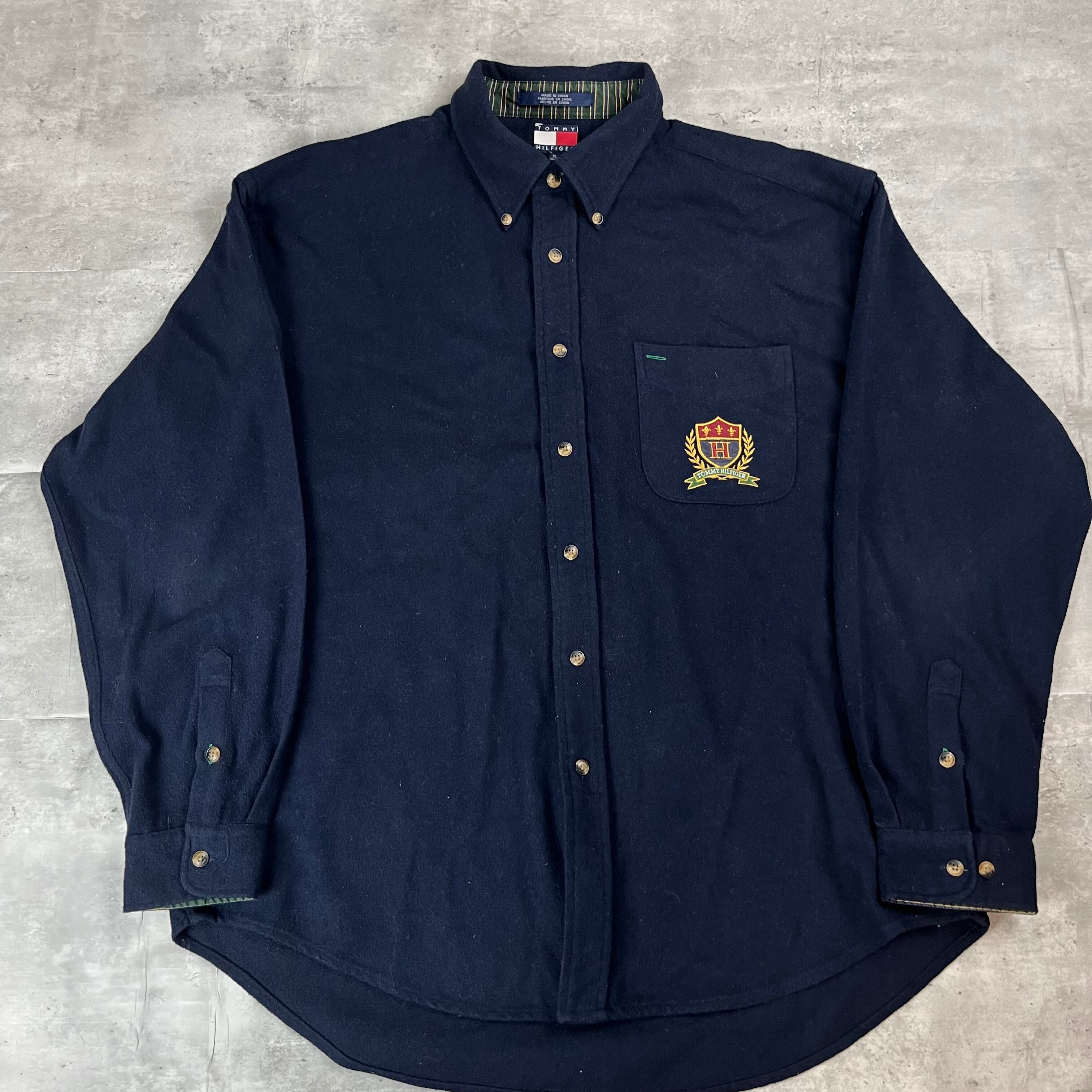 オールドトミー ウールシャツ ネイビー 刺繍ロゴ 90s 1306