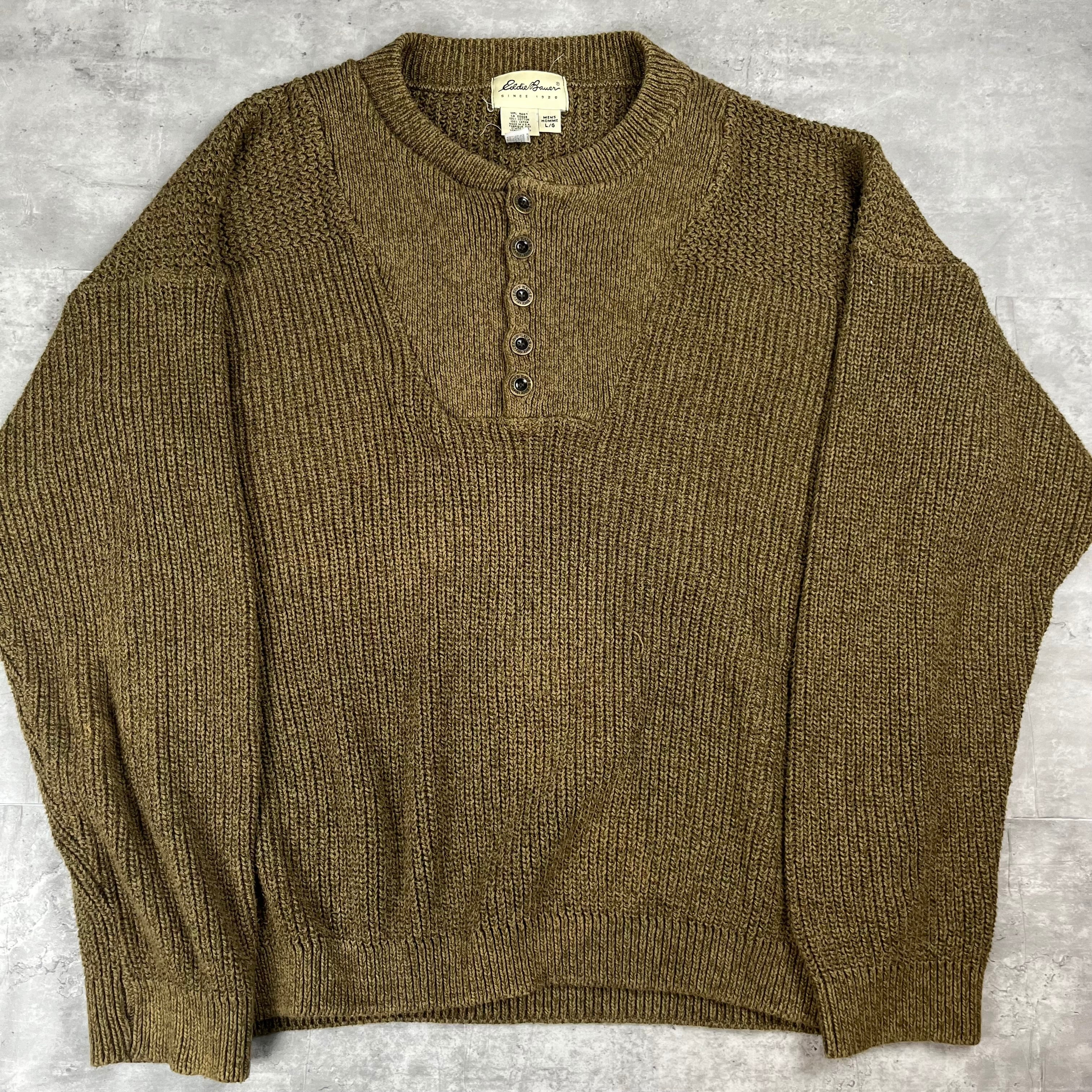 USA製 エディーバウアー 白タグ コットンニット ヘンリーネック 90s